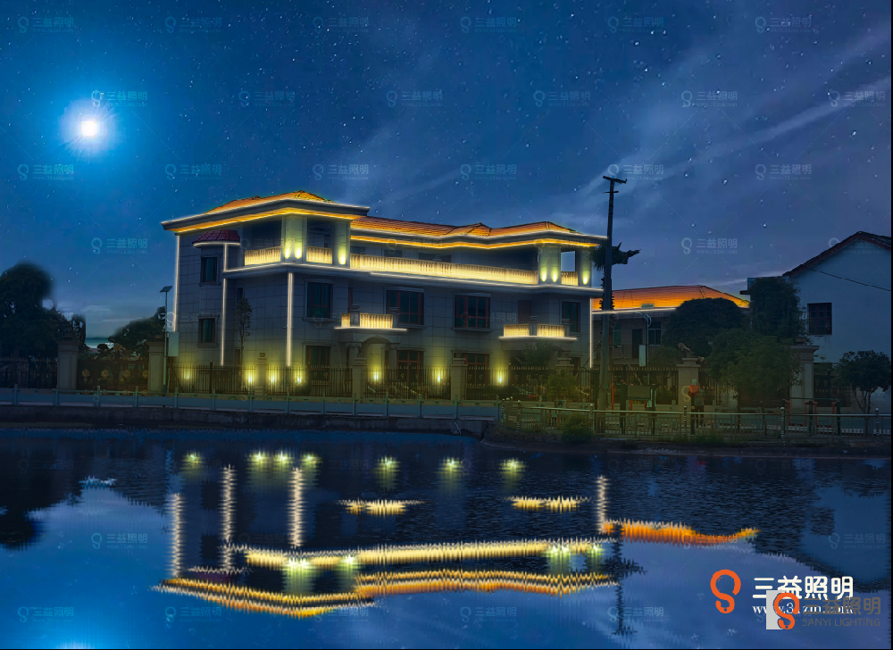 此別墅燈光根據(jù)別墅造型外觀進行設(shè)計,使別夜晚墅輪廓更加突出,通過燈光的設(shè)計和布置,能夠讓別墅在夜幕中更加美觀、氣派,提升整體的視覺效果。