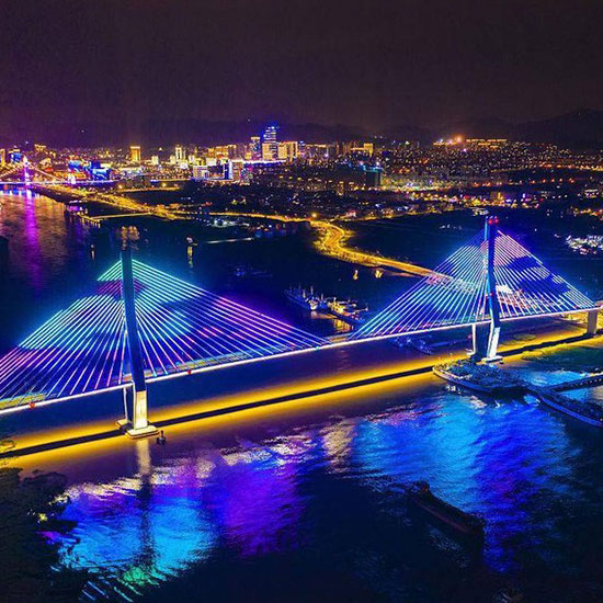 橋梁全彩LED燈光是通過安裝帶DMX512控制芯片的燈具,再通過電腦、控制器進行編程,使燈光能按程序展現(xiàn)不同效果,常用效果有炫彩、跑馬、漸變、像素屏。應用場景:橋梁亮化工···